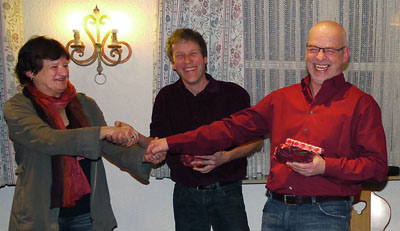 Unser Foto (von Brunhild Wössner) zeigt Christine Denz, Vorsitzende von S.U.N. e. V., die sich sich bei den beiden Referenten Bernd Brunner (M.) und Uwe Steiff, beide Geschäftsführer von WindEnergie S & H GmbH, bedankt.