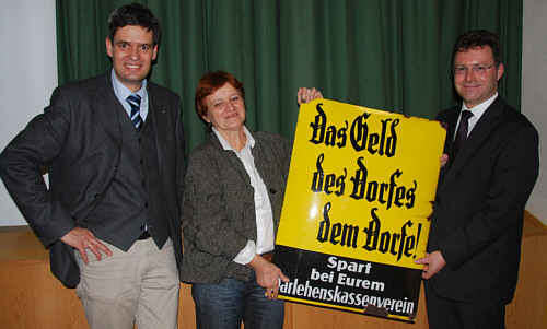 Möglich mache dies die Energiegenossenschaft – eine offene Gesellschaft, in die sich alle einbringen können. Profitieren würden alle; nämlich die Geldgeber, die Handwerker und Lieferanten und die Kommunen durch die Gewerbesteuer. Das Geld des Dorfes bleibe im Dorf bzw. in der Stadt. Michael Diestel, den die Begeisterung immer wieder erkennbar mitriss, zeigte weitere kreative Projekte. So kam der Fußballverein Großbardorf durch eine weitere Energiegenossenschaft zu einem sonst unerschwinglichen Tribünendach. Den Schatten bzw. Regenschutz bildet eine Photovoltaikanlage, die zum großen Teil Fußball-Fans finanzierten. Auch hier geht es nach dem Motto Raiffeisens: Was dem Einzelnen nicht möglich ist, schaffen viele. Von 2005 bis 2010 sind so insgesamt rund 50 Mio Euro in Energiegenossenschaften im Landkreis Rhön-Grabfeld investiert worden.